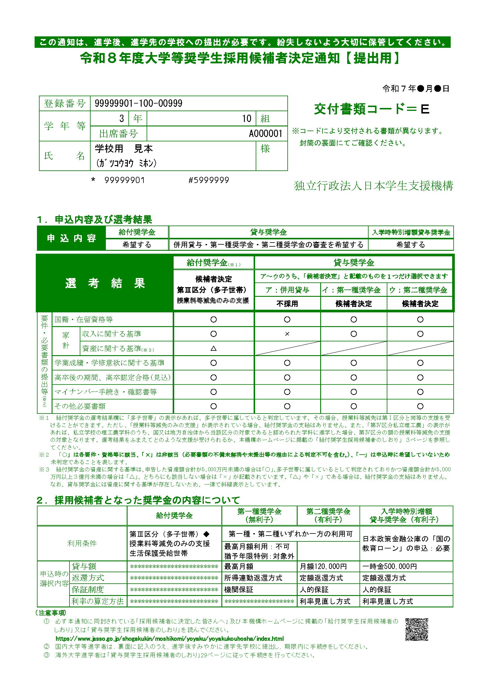 高校等で日本学生支援機構奨学金の予約をしており「令和8年度採用候補者決定通知」を持っている方は、